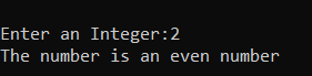 1 2 3 4 5 6 7 8 9 10 11 12 13 14 15 16 17 | /* C program to check whether a number is Even od Odd */ #include<stdio.h> int main(){ int n; printf("\nEnter an Integer:"); scanf("%d",&n); if(n%2==0) { printf("The number is an even number "); } else { printf("The number is an odd number"); return 0; } } |